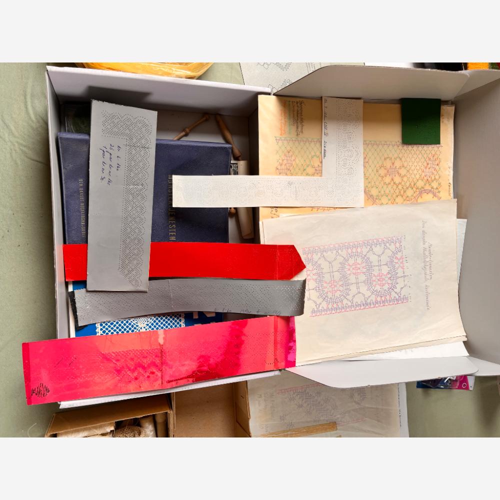 Stort hjemmelavet kniplebræt. Bordet kan drejes, så de pinde der ikke er i brug kan drejes til side. Div tilbehør som pinde, tråd (gammel), nåle og div mønstre medfølger. Bl.a. Tønder Chr IV, Tønder Skønhed og Tønder Lille Sol. Sælges samlet.