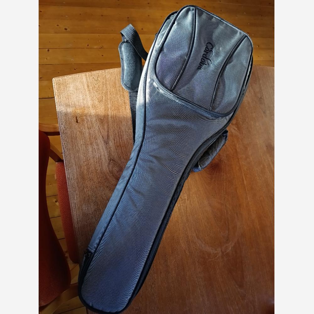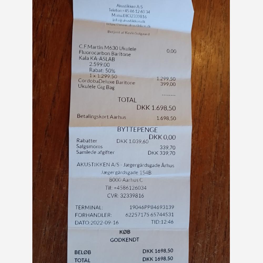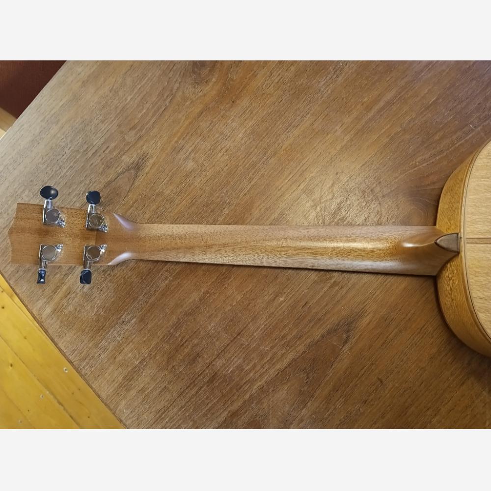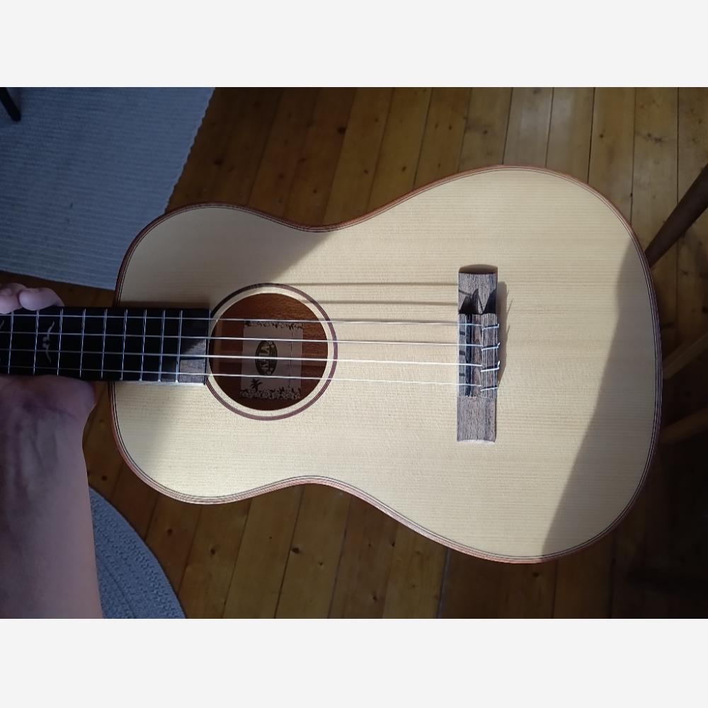 Jeg købte denne ukulele i 2022 hos Akustikken i Århus. På trods af, at jeg ikke kan spille på ukulele, kunne ikke stå for den, fordi den havde en utrolig lækker klang. Jeg købte den på tilbud den gang. Det var simpelthen et fejlkøb. Jeg har ikke tid til at lære at spille på den. Den fremstår, som da den forlod butikken, uden en skramme. Den måler 77 cm. Stemningen er D-G-H-E. Det svarer til de 4 nederste strenge på en guitar. Kom og prøv og se den! Den har en dejlig klang. Kan evt. byttes med en violin. Violinen behøver ikke nødvendigvis at være helt i orden.