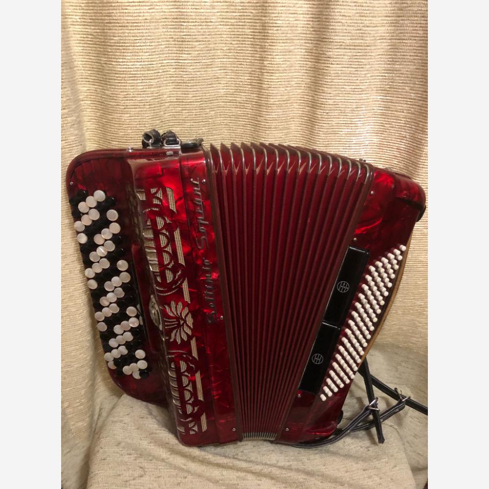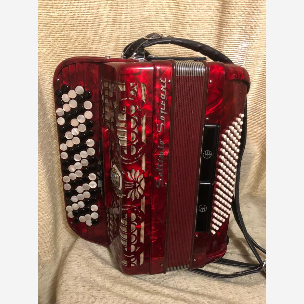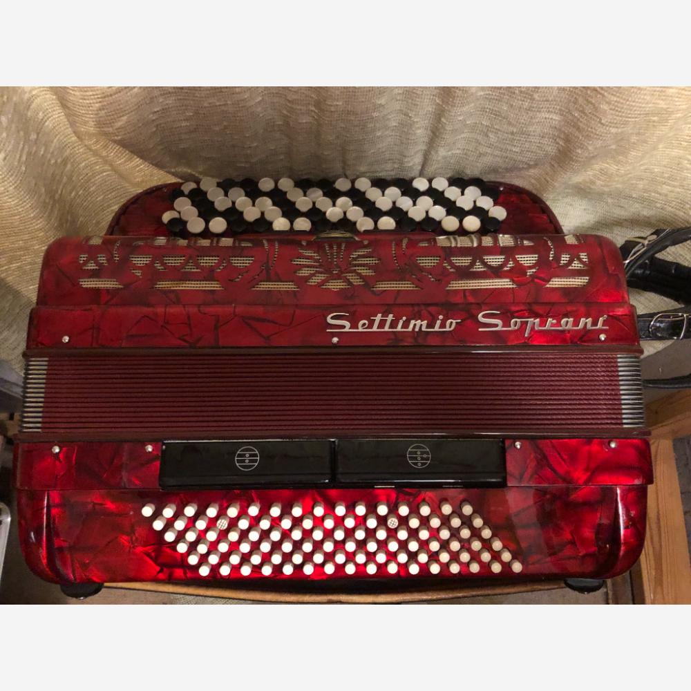Settimio Soprani knapharmonika, som er let spillende og ren i stemmerne og fast i bælgen! En fin og god harmonika til prisen! Kom og prøv den, det koster ikke noget! Svarer kun på SMS, eller telefon!